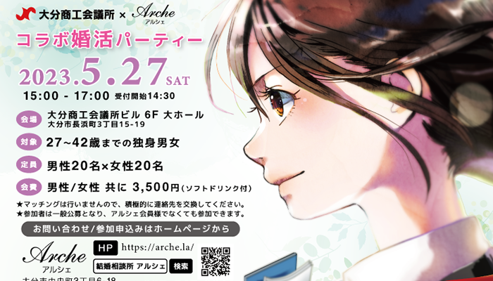★終了★2023年5月27日(土)大分商工会議所 × Arche-アルシェ-コラボ婚活パーティー 大分商工会議所ビル 6F 大ホール15時~