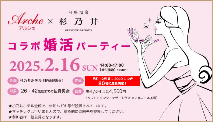 【★終了★】2025年2月16日(日)Arche-アルシェ × 別府温泉 杉乃井 コラボ婚活パーティー 14時開始| 大分で婚活するなら結婚相談所 アルシェ
