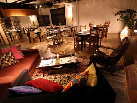 お洒落な店内はソファとテーブルを完備しており